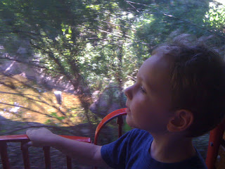 So we've started a couple of traditions for when the students are here. One is that on Wednesdays we meet papa for pizza at a greasy pizza place to have dinner. He goes back to working on his sermon for large group that night and we go to the park. Elliot rides his bike around the perimeter of the park while I push Elsie in the stroller. The first time we did this Elsie was out of town. I had to help Elliot get started several times, and he almost didn't make it around the whole park (About 1 mile total). Well, he's improved. Tonight, (after a soda and two pieces of extremely greasy pepperoni pizza) we again went to the park. The kid is a rocket. His tires MIGHT be 10 inches in diameter. But by the 3/4 mile mark, I was yelling, about 20 yards behind him, as I ran as FAST as I could while pushing Elsie, STOP! STOP!